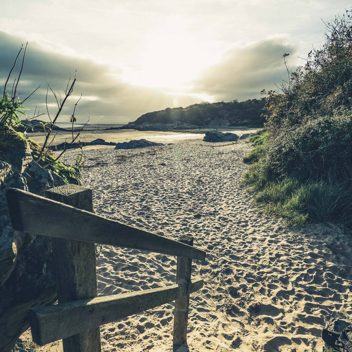 Mit 304 Metern Höhe zwar eher Fels als Berg, eröffnet er einem dennoch alles, was die Gegend so besonders macht. Über Schafweiden und heidebewachsene Moore führt der Weg schließlich auf den Kamm. Von hier oben hat man einen totalen Panoramablick auf das Eryri-Gebirge im Nordosten. Zu Füßen liegt der große Strandbogen von Porth Neigwl, im Volksmund ganz liebevoll Höllenschlund genannt, und im endlosen Blau die vorgelagerte Insel Bardsey. Nur jetzt vor lauter Schauen das Zurückgehen nicht vergessen!