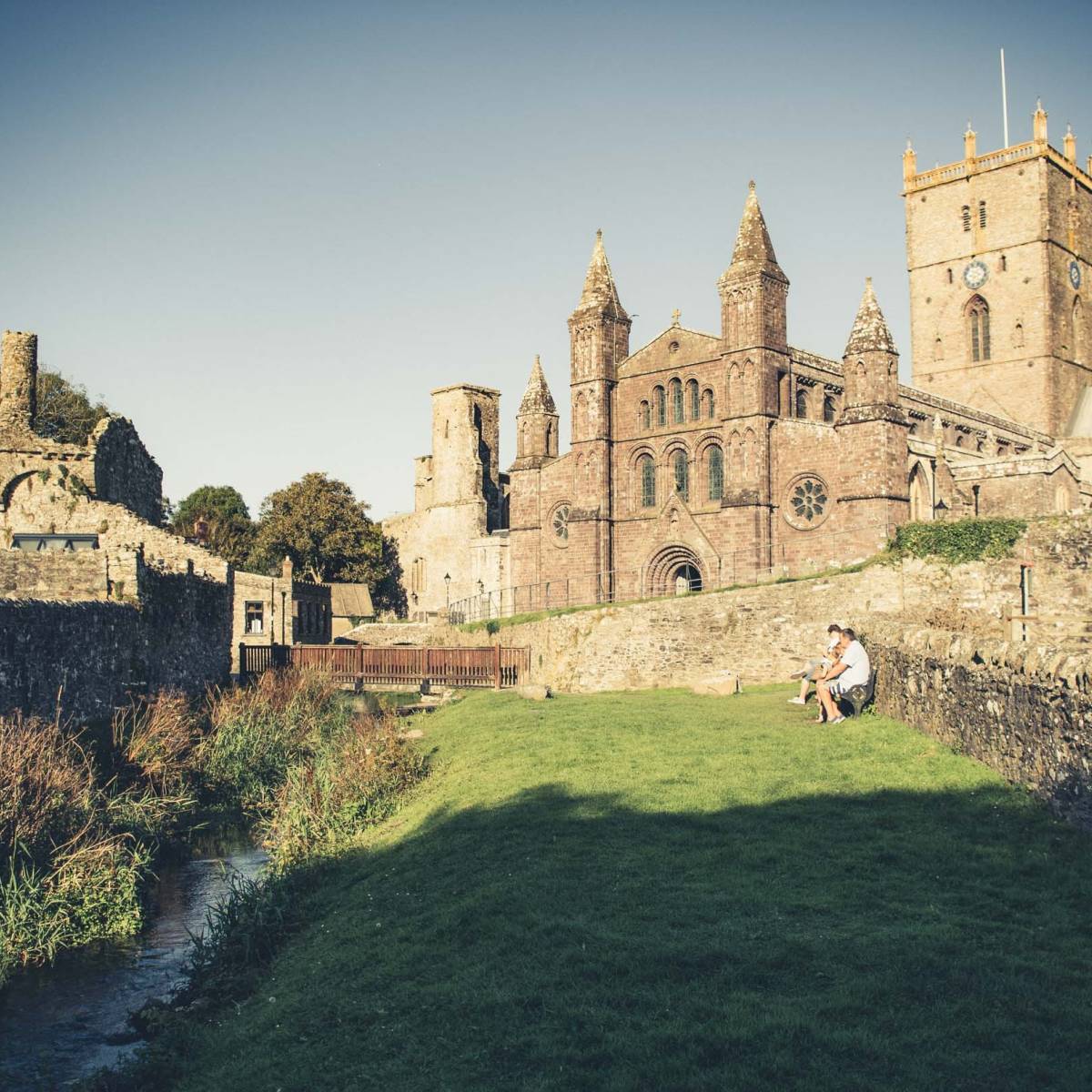 Erhaben und würdevoll an diesem Küstenabschnitt ist St Davids, die heiligste Pilgerstätte des Landes. Eine eindrucksvolle Kathedrale aus dem 12. Jahrhundert dominiert zusammen mit der Ruine des einstigen Bischofspalasts den Ort, der von drei Seiten von Meer umgeben und die kleinste Stadt Großbritanniens ist.